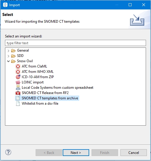 📥 File > Import > Snow Owl >SNOMED CT templates from archive