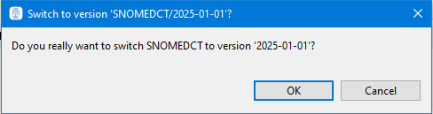 To select a version, open the Code Systems View. You can see a list of the terminologies that are supported in Snow Owl. Expand the selected terminology, then expand Versions and double-click on the version you want to switch to. A dialog will pop up asking you to confirm to switch to the selected version.