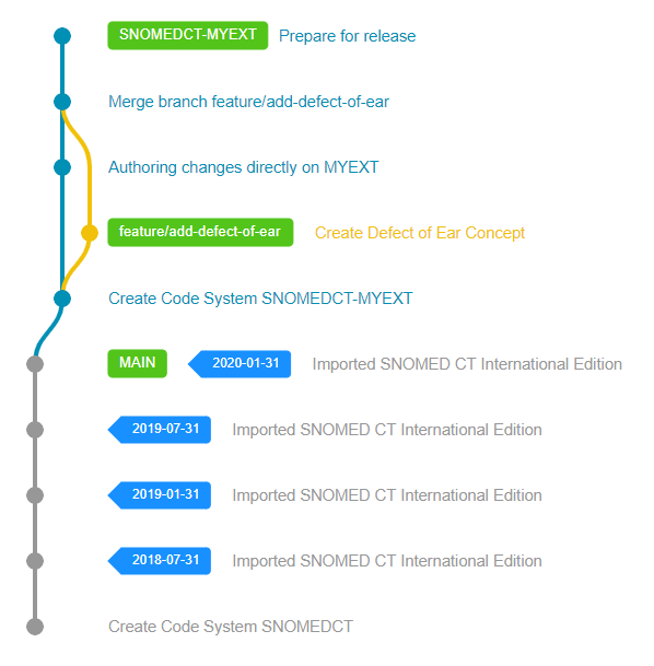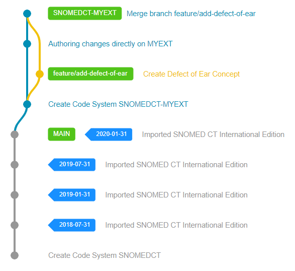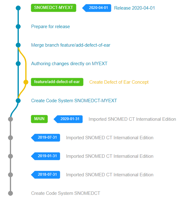 When all necessary steps have been performed successfully, a new Code System Version needs to be created in Snow Owl to represent the latest release. The versioning process will assign the requested effectiveTime to all unpublished components, update the necessary Metadata reference sets (like the Module Dependency Reference Set) and finally create a version branch to reference this release later.