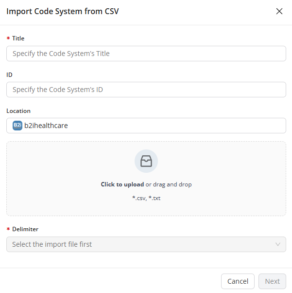 The identifier of the Code System. If you leave this field empty, the system will automatically generate an ID for your Code System