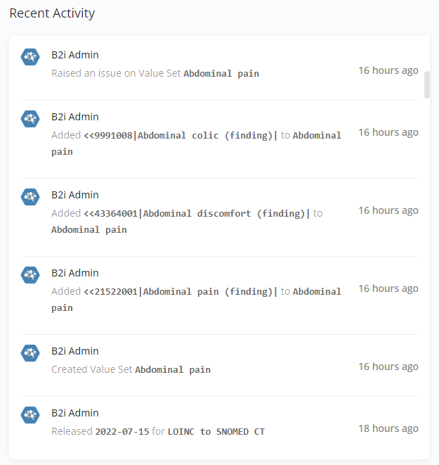 The Recent Activity section displays the latest notifications allowing users to review which resource was modified by which user.