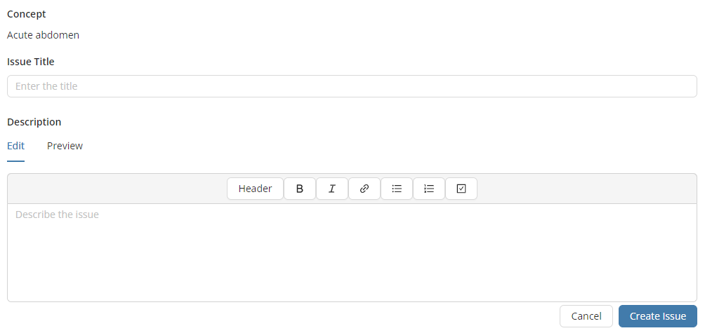 Raising issues related to specific Code System concepts is also supported. Pressing