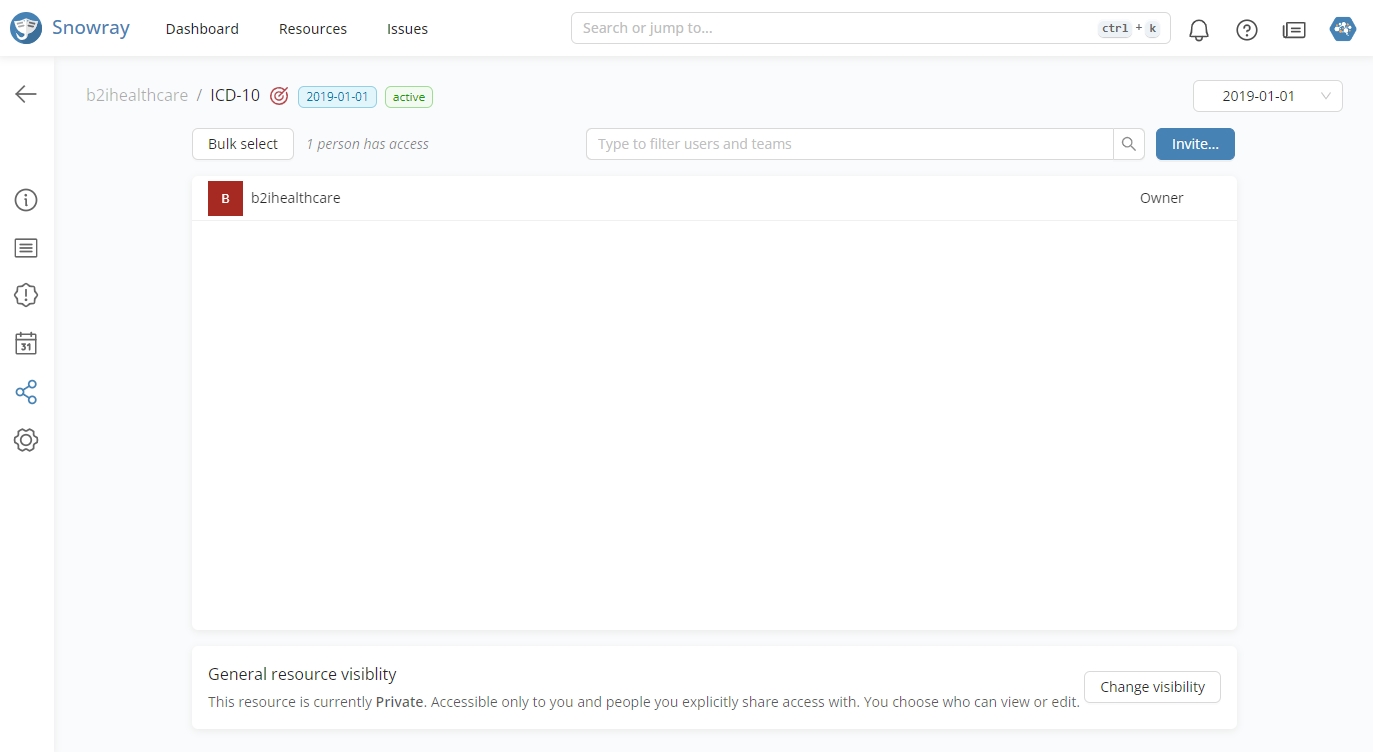 Resource maintainers can decide who can view their resources by choosing one of the visibility options.