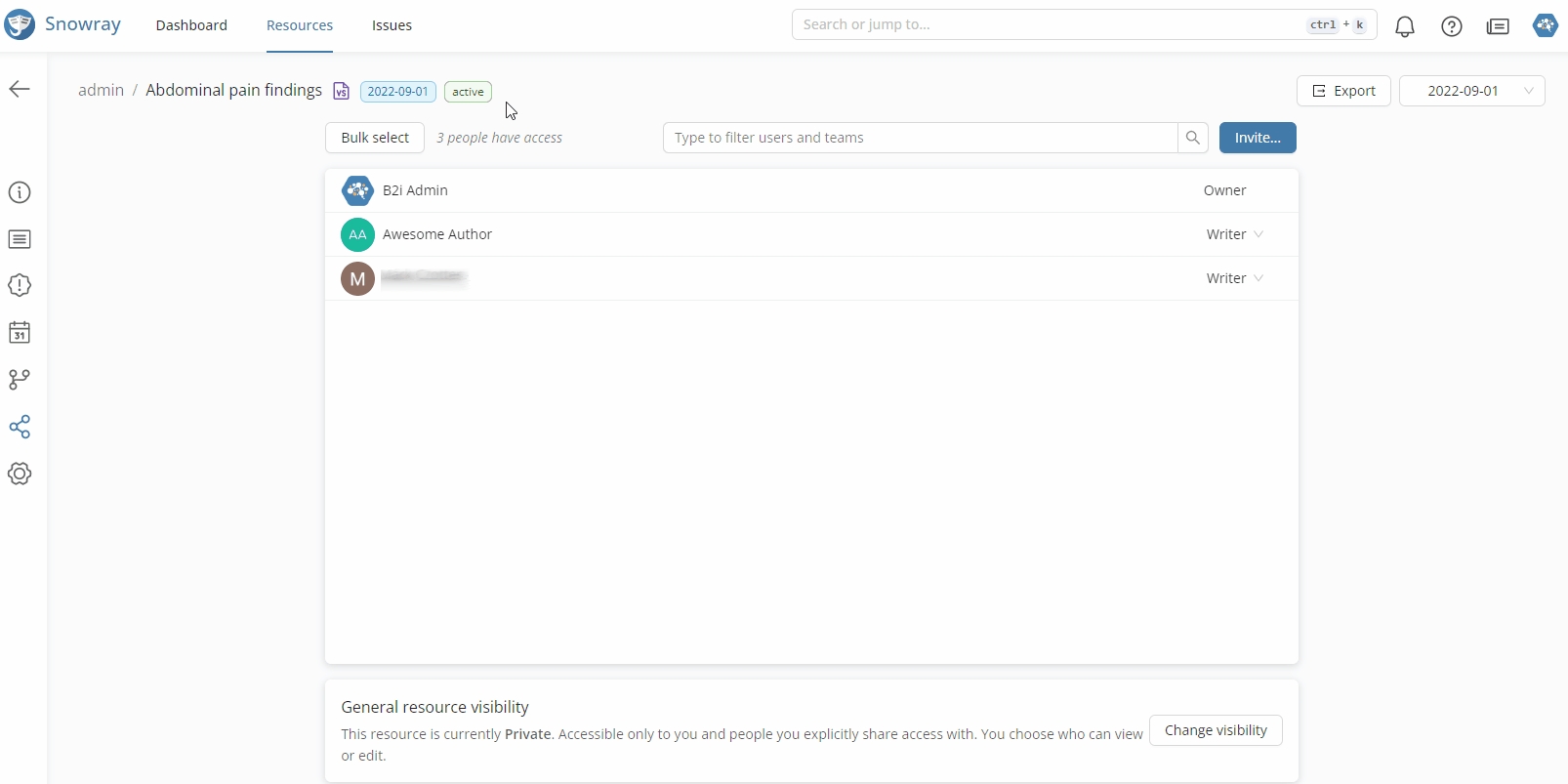 Maintainers have the right to revoke user access to a specific resource using the dedicated menu item. This can be performed either for a single user or for multiple users as well, using the checkbox in the front.