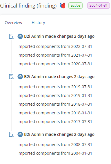 When browsing a Code System, selecting a concept navigates users to the concept details. On the concept's Overview tab descriptions, properties, and metadata are revealed. Some of the content is displayed in blue color, which indicates that it is a link to another concept. Clicking on those links navigates users to the linked concept's detailed overview.