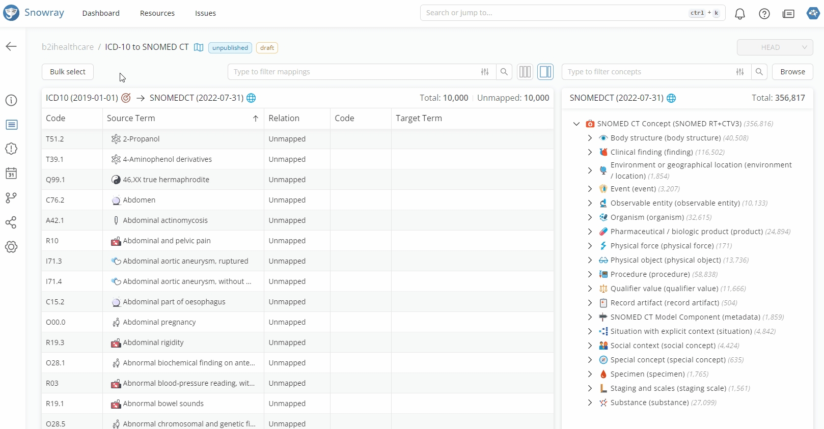 Snowray supports adding map targets in an automated way based on lexical matches.