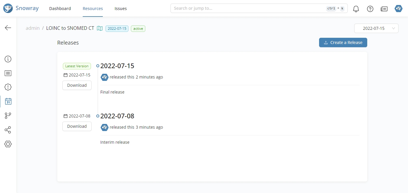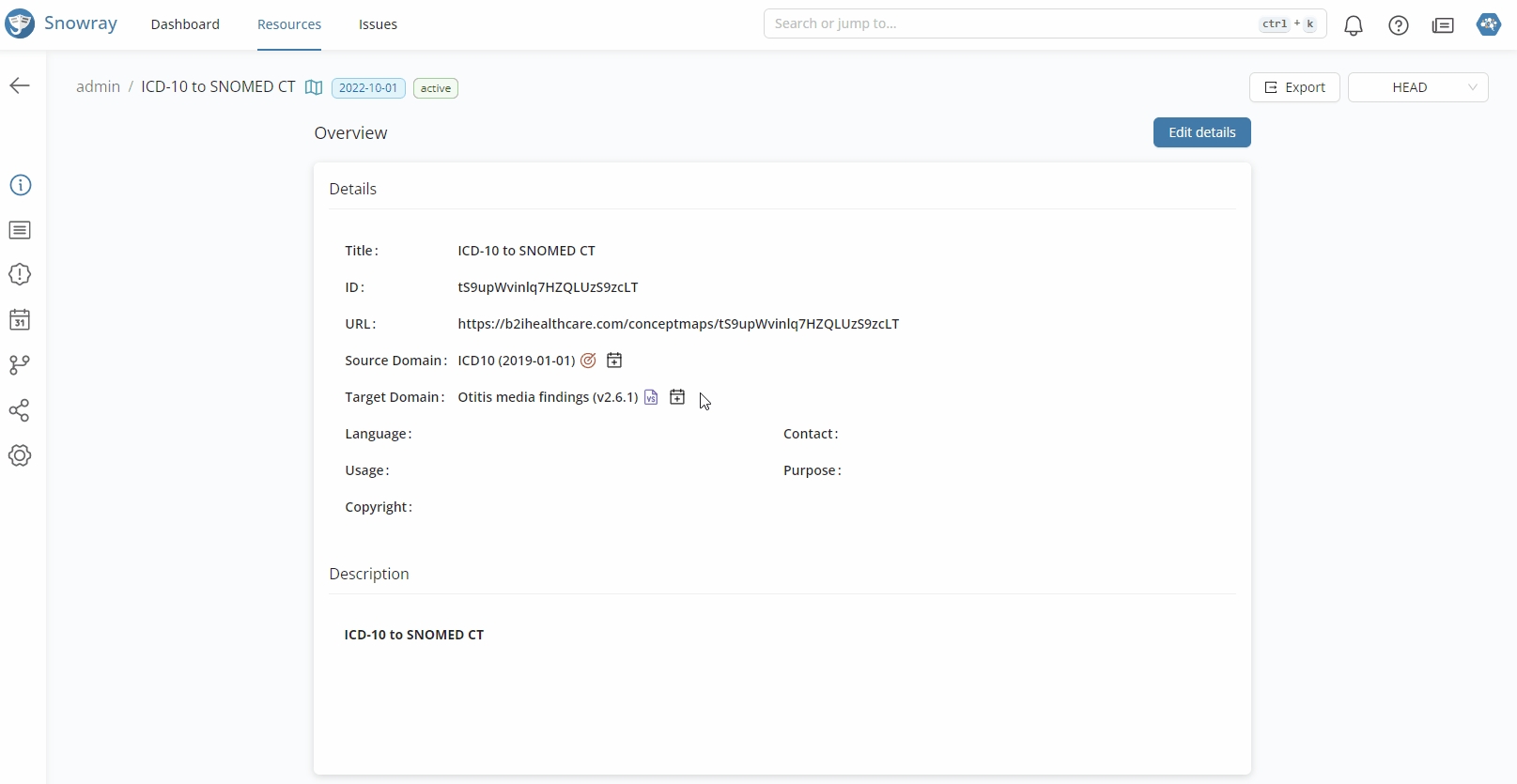 If the domain of the resource has a more recent release, users have the option to migrate the definitions to the newer Code System version from the Overview tab.