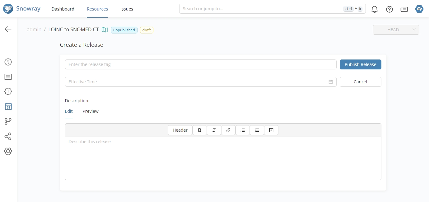 To release a Concept Map, select it from the Resources page, go to the Releases tab and click on thebutton then fill out the required fields and press the