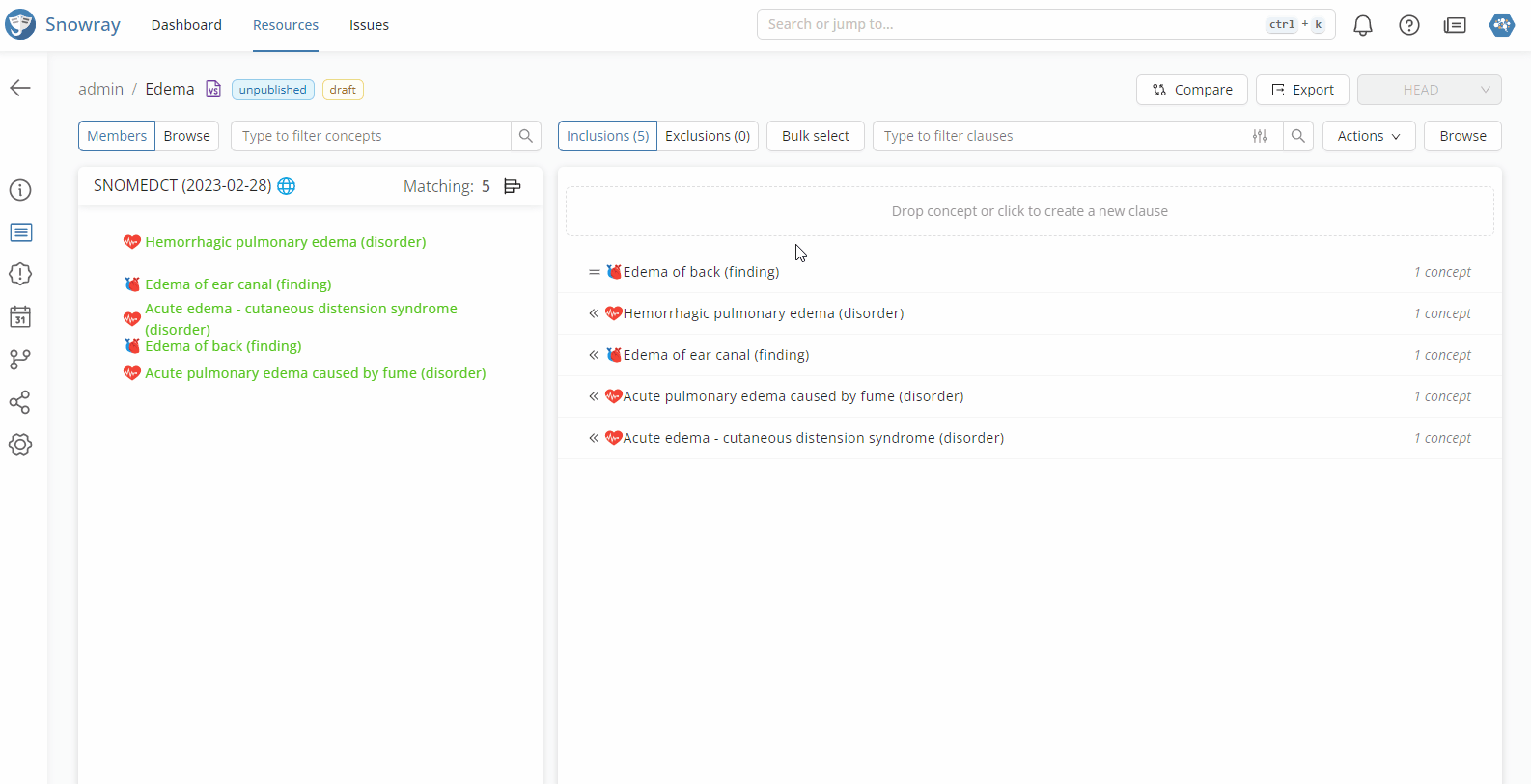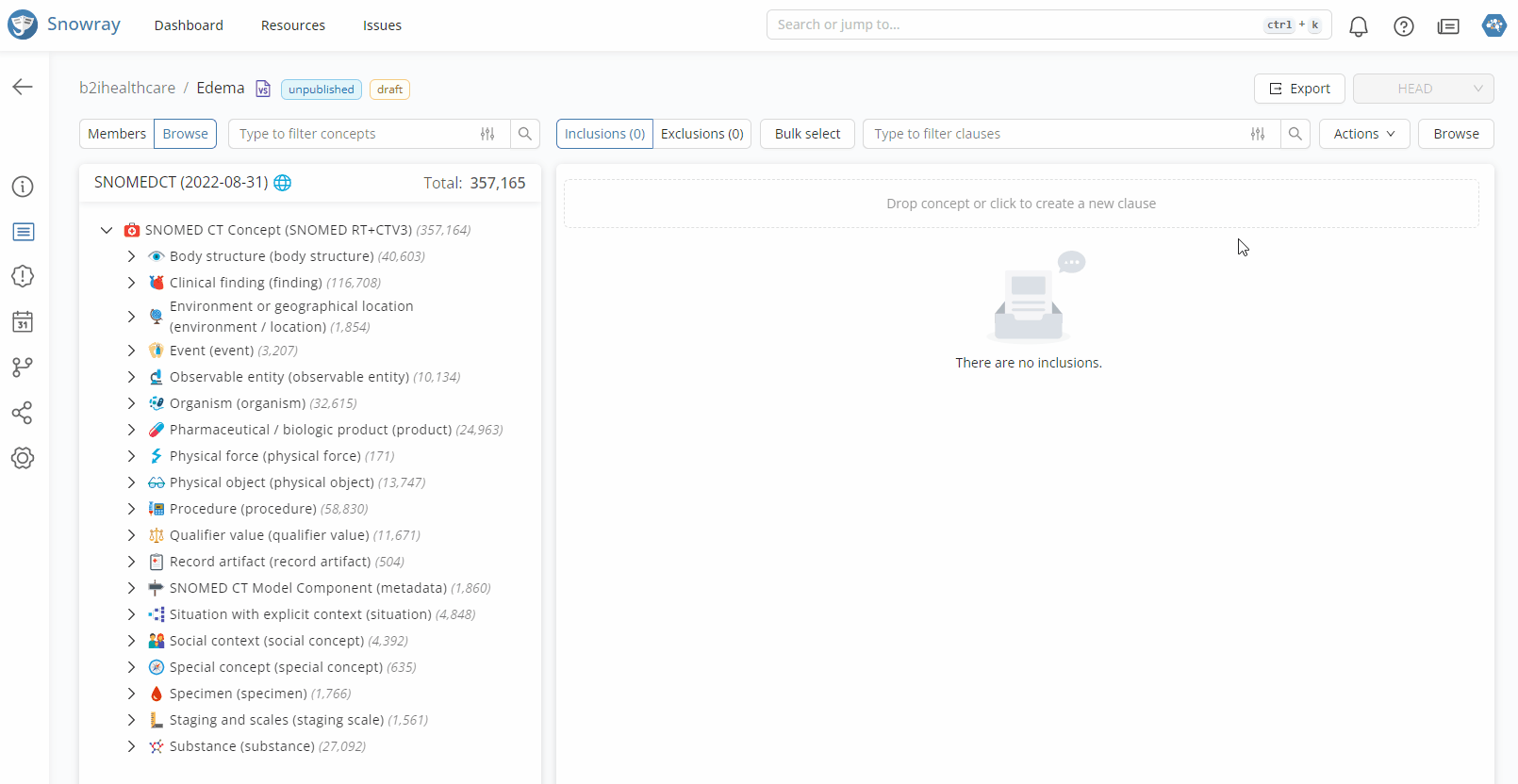 As part of the authoring process, users also have the option to optimize their Value Sets. This feature simplifies Value Sets by replacing individual members with ECL expressions. For example, if all the children of a concept are added, it will reduce the clauses to a single clause using the following format: < parentId | FSN |.