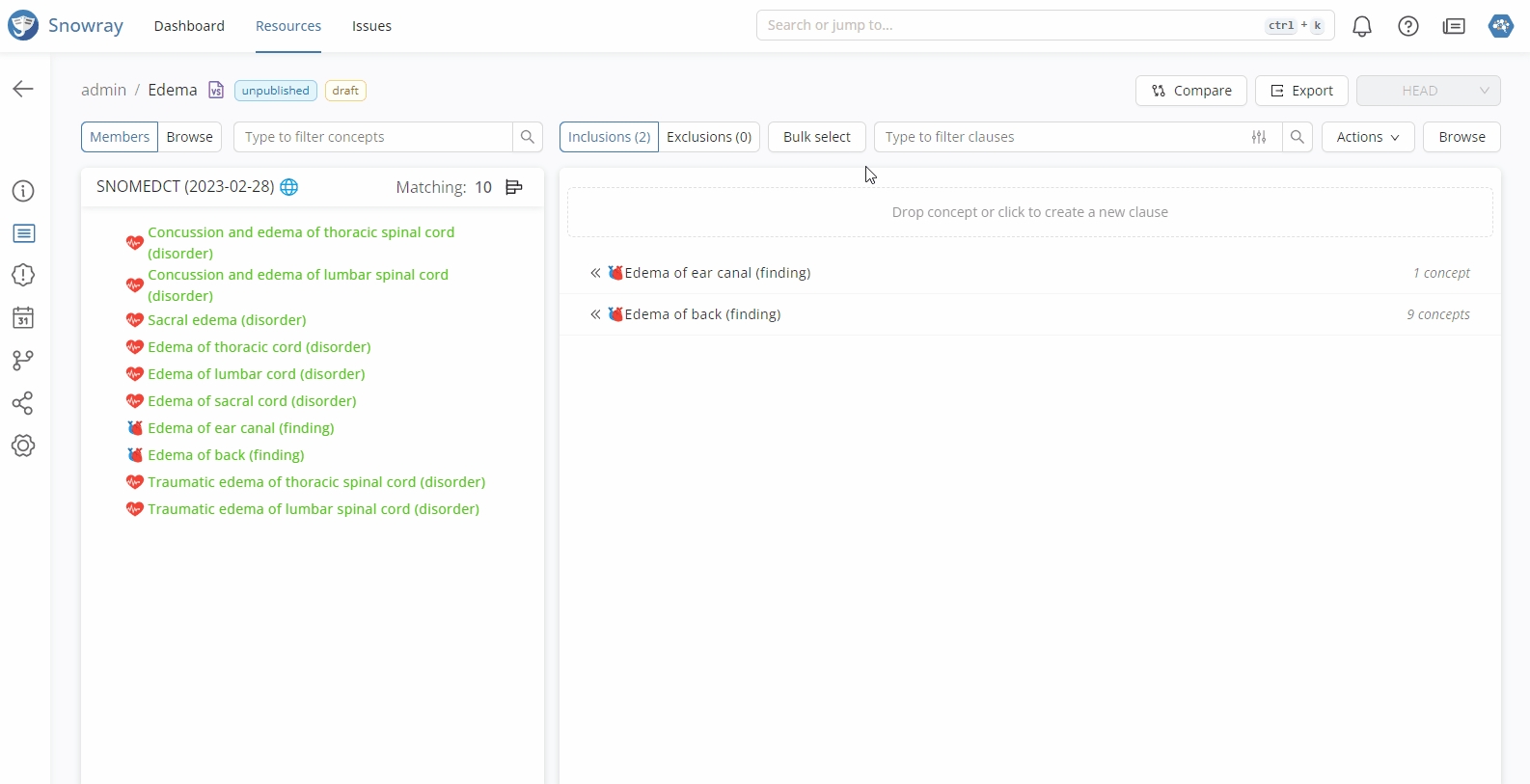 Value Sets that are in the draft status can be deleted, while resources in active status can only be retired. The action can be performed from the resource's Settings tab by pressing the retire/delete resource button.