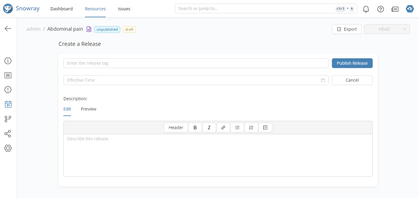 To release a Value Set, select it from the Resources page, go to the Releases tab and click on the