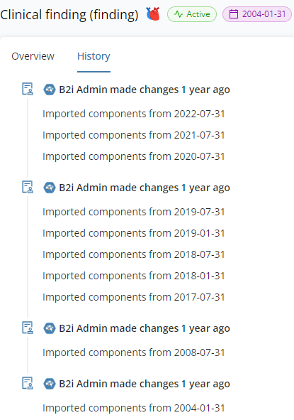 When browsing a Code System, selecting a concept navigates users to the concept details. On the concept's Overview tab descriptions, properties, and metadata are revealed. Some of the content is displayed in blue color, which indicates that it is a link to another concept. Clicking on those links navigates users to the linked concept's detailed overview.