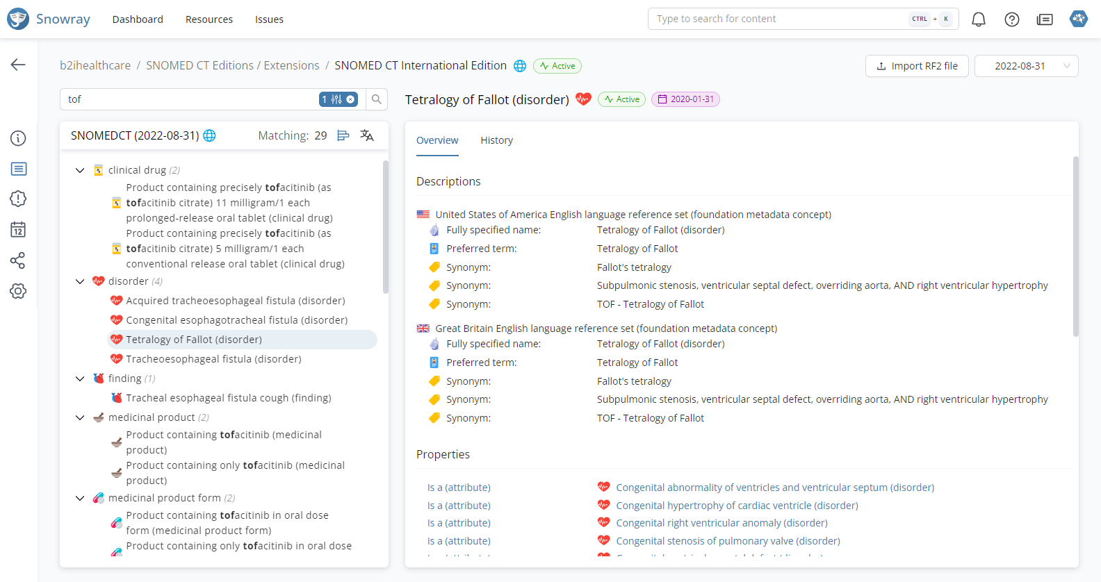 Snowray provides an advanced search option for SNOMED CT, which can be invoked by pressing the advanced filter icon in the search bar. This enables users to specify additional criteria to restrict their searches.