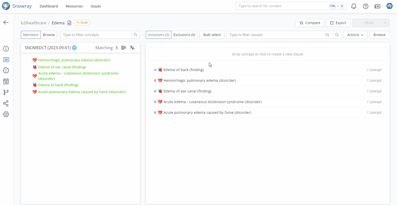 As part of the authoring process, users also have the option to optimize their Value Sets. This feature simplifies Value Sets by replacing individual members with ECL expressions. For example, if all the children of a concept are added, it will reduce the clauses to a single clause using the following format: < parentId | FSN |.