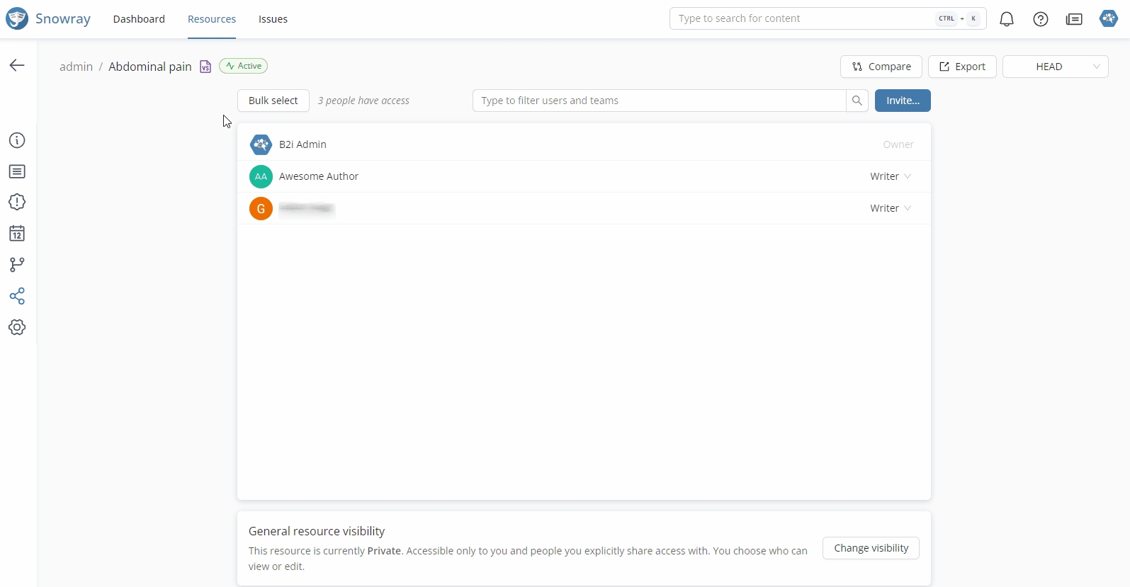 Maintainers have the right to revoke user access to a specific resource using the dedicated menu item. This can be performed either for a single user or for multiple users as well, using the checkbox in the front.
