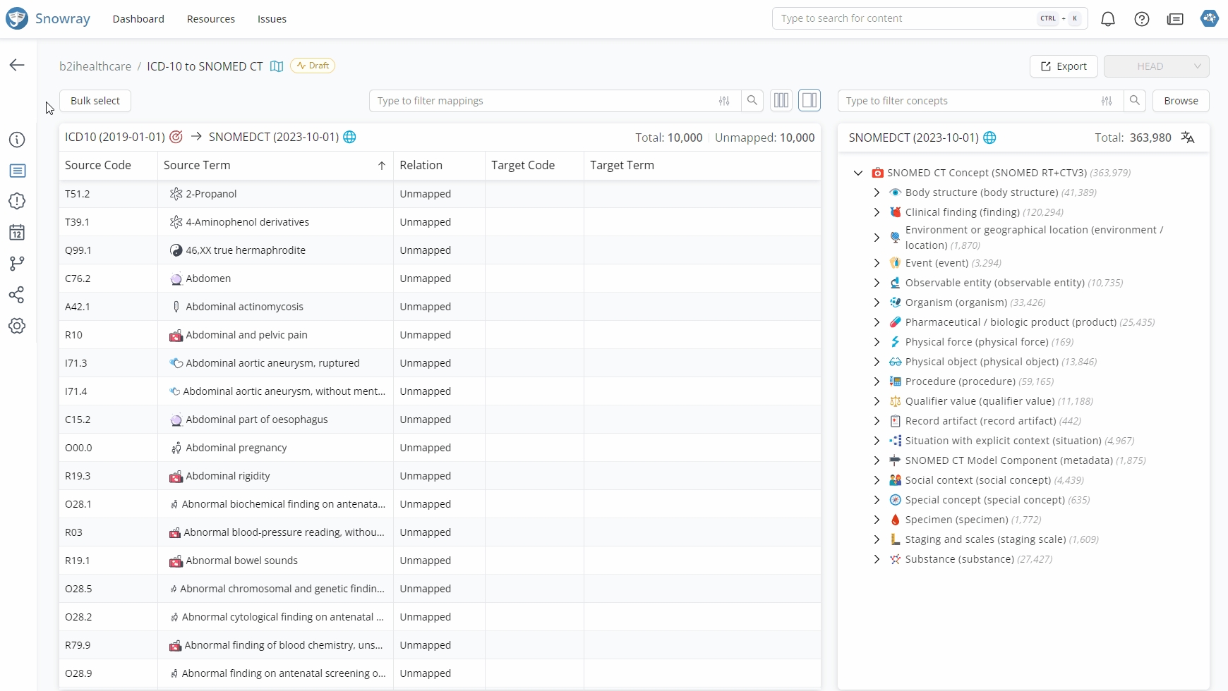 Snowray supports adding map targets in an automated way based on lexical matches.
