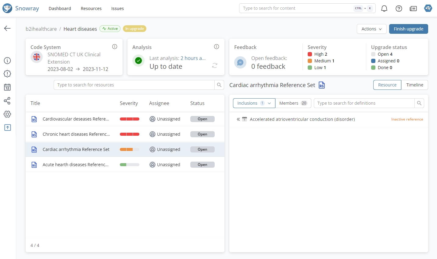 This widget is only displayed on Collection upgrade dashboards as it provides a summary of the included Reference Sets. Information such as the number of open feedback, the upgrade severity, and the upgrade status is collected here.