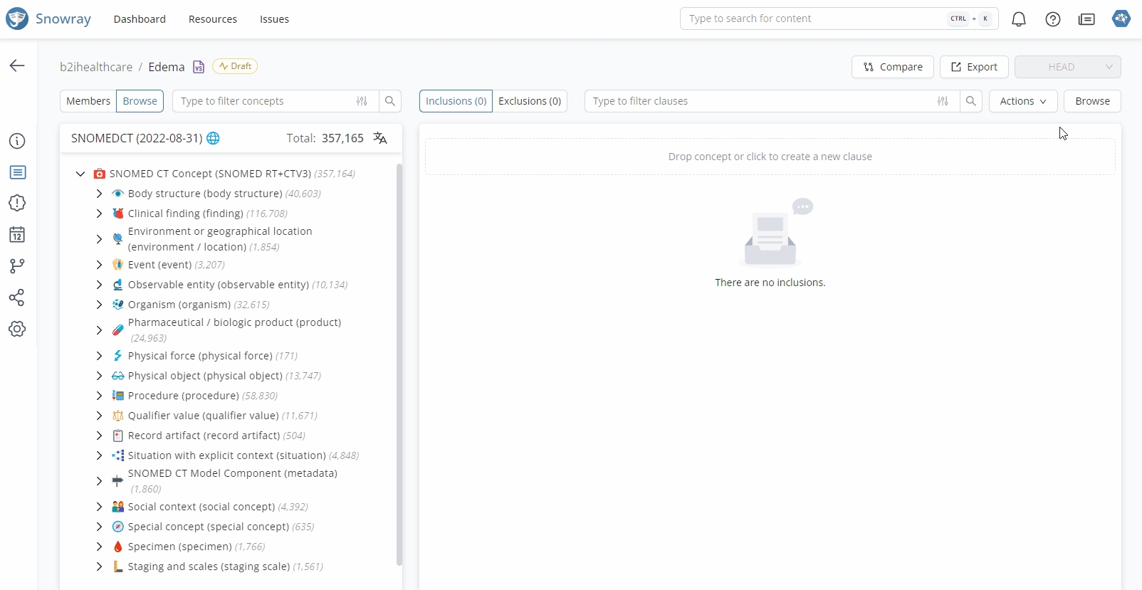 Already existing queries can also be imported from RF2 text files, as a way to add multiple clauses to a Value Set.
