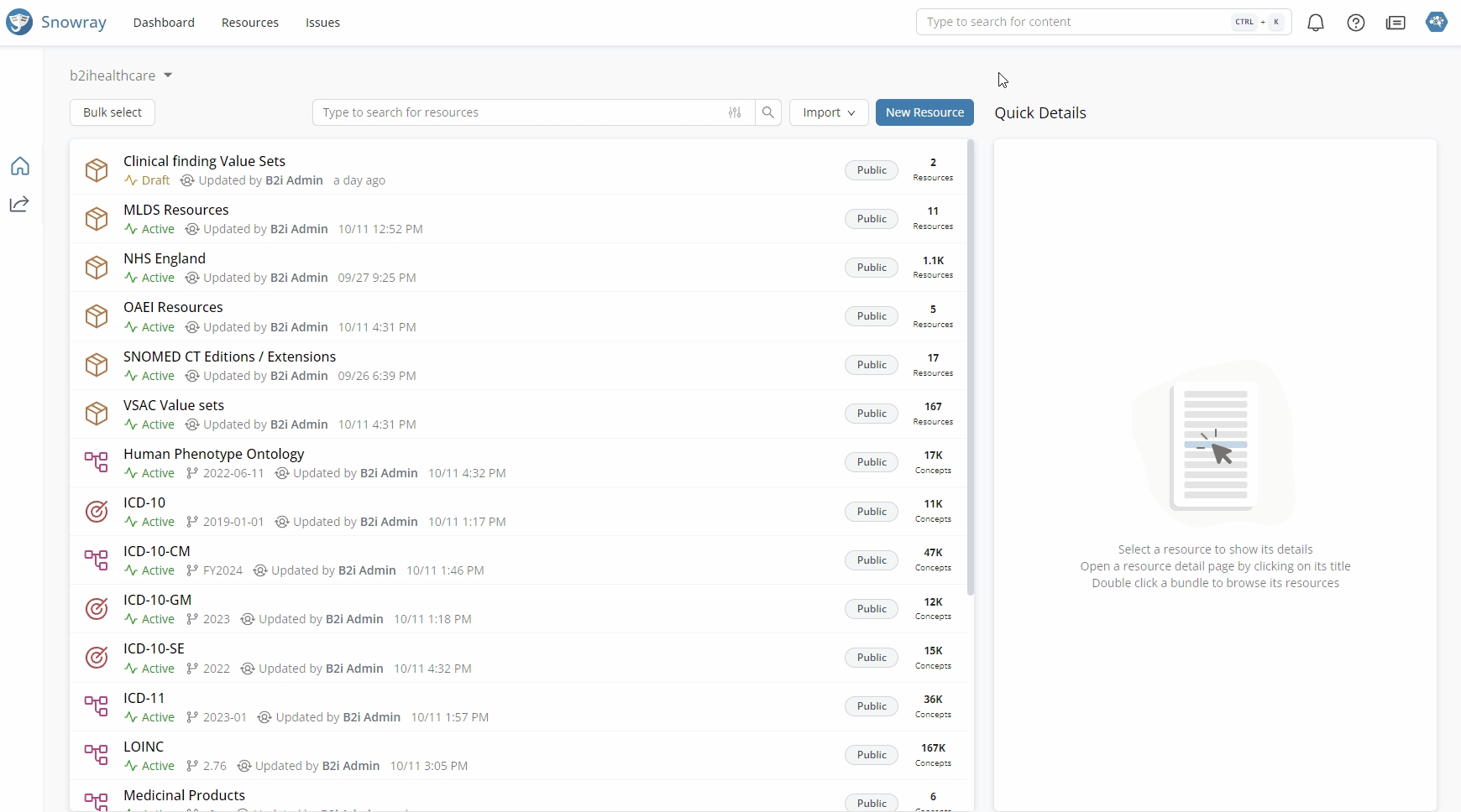 Snowray also enables building subsets of the Code Systems that are available in the app, generating more focused content with that.