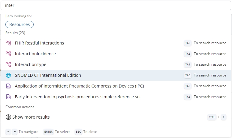 Press to display more results. Note: In case of searching for resources, the results will be filtered and displayed on the Dashboard page. While in case of searching within a resource, users will be navigated to a filtered state of the given resource's Content tab where the additional results are displayed.