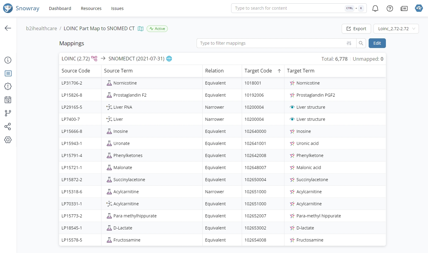 Mappings that are part of the Concept Map can be browsed after navigating to the Content tab.