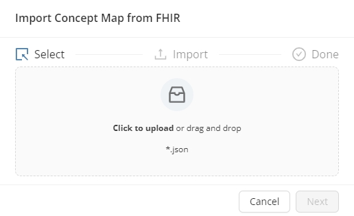 Users have two options to specify the import file in the import wizard: either by clicking in the import area and using the selector, or by drag and dropping it to the designated area.