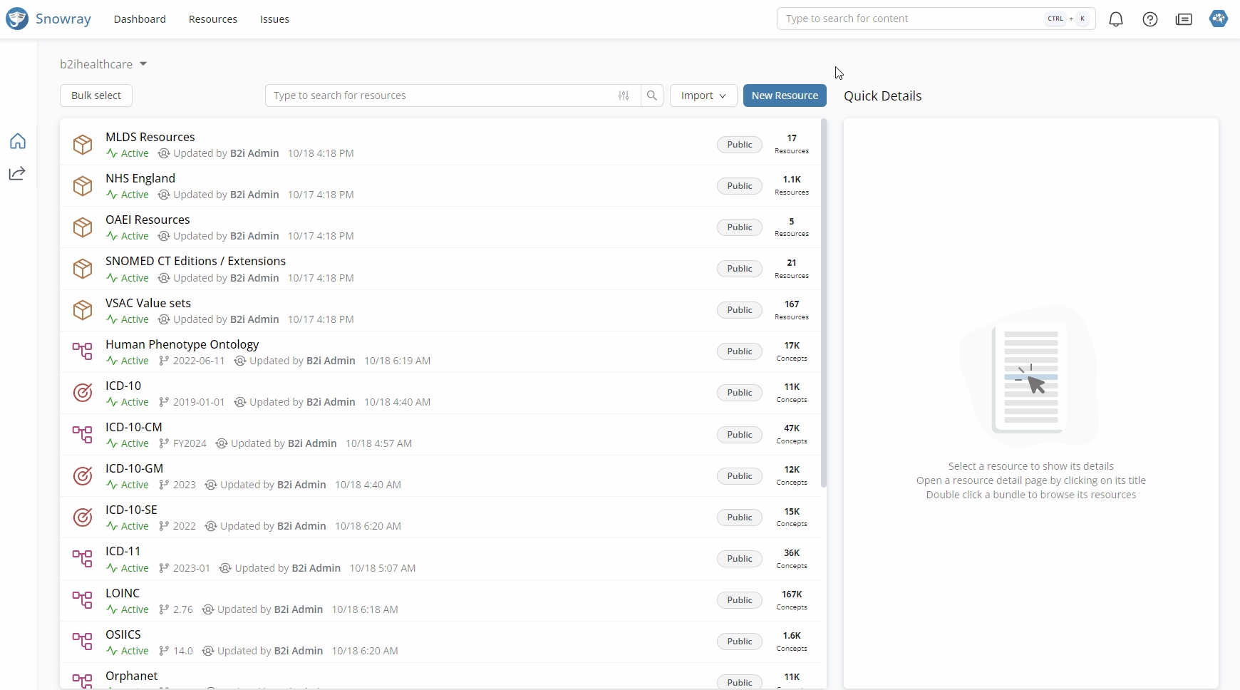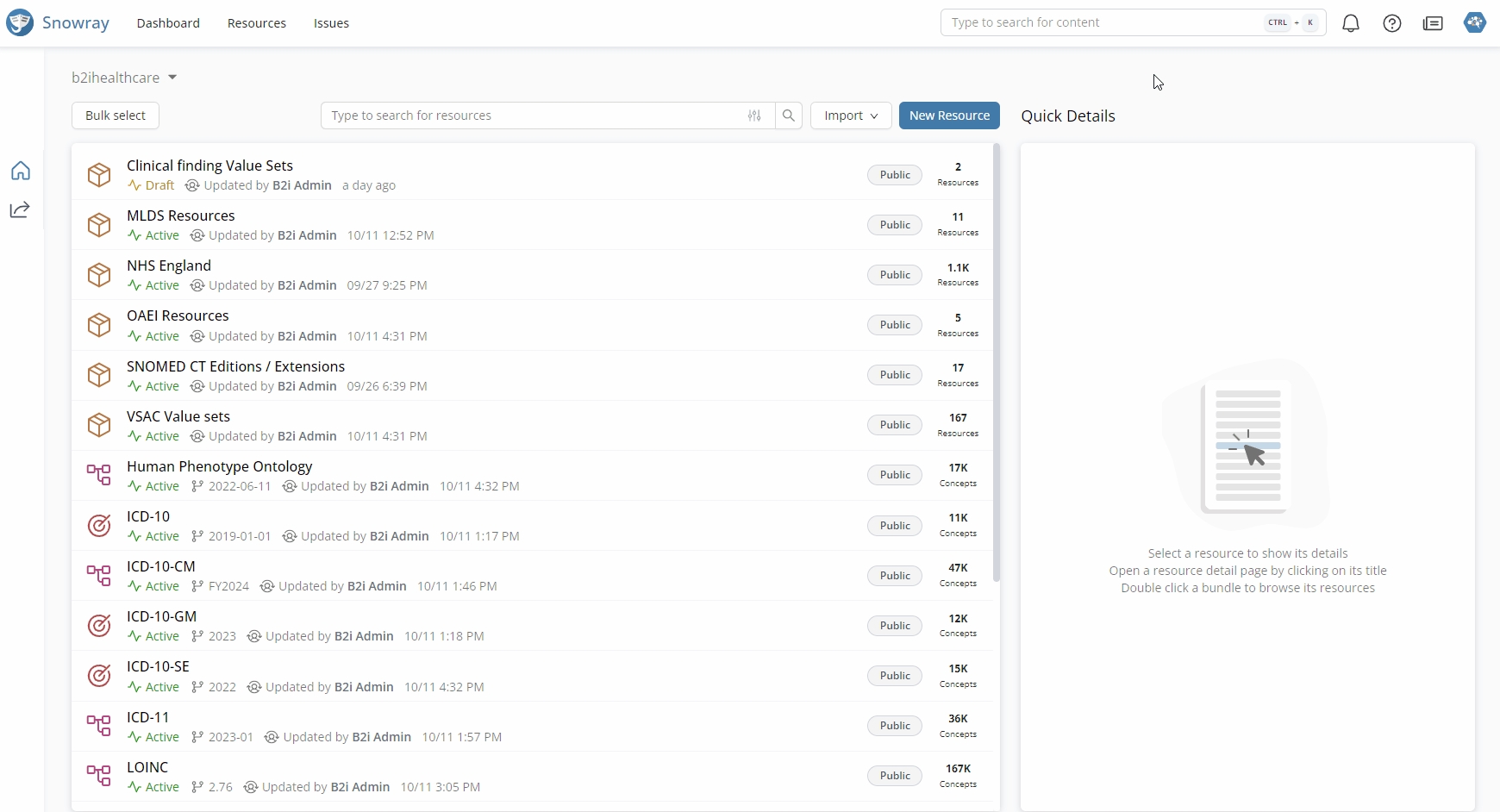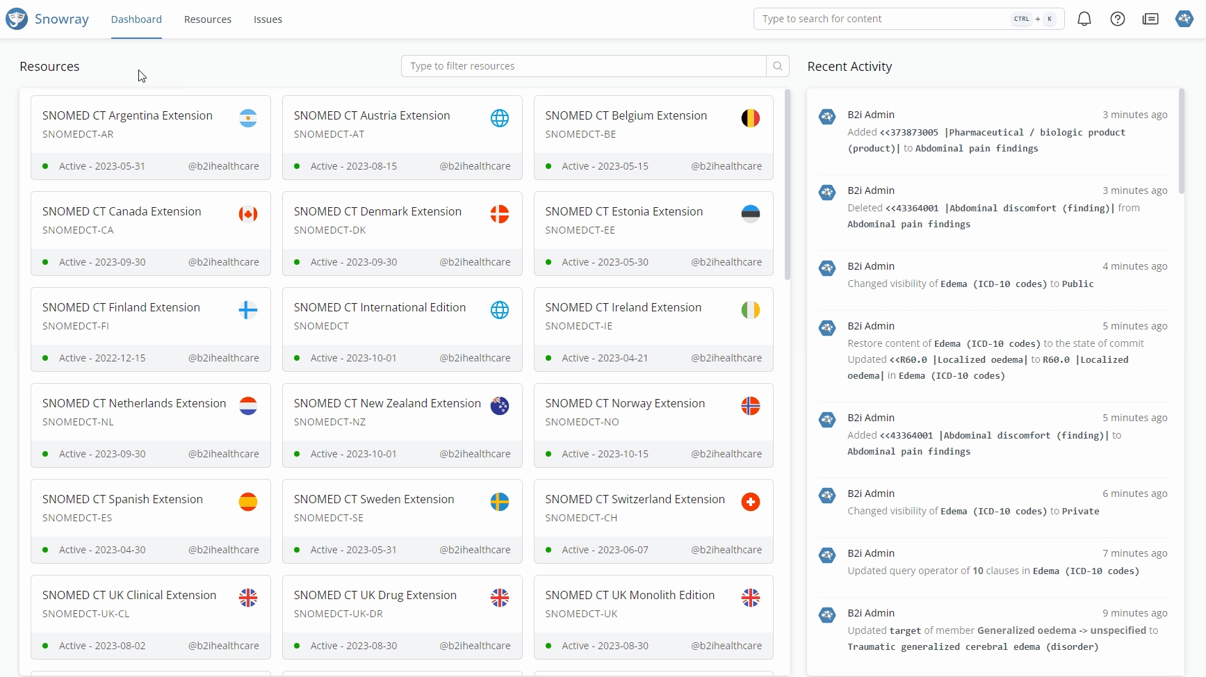 Snowray also enables building subsets of the Code Systems that are available in the app, generating more focused content with that.